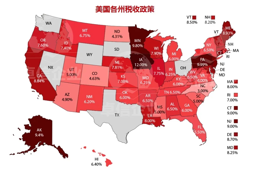 美國(guó)有50個(gè)州。出于政策原因,每個(gè)州對(duì)企業(yè)的稅率都不一樣。所以在注冊(cè)美國(guó)公司的時(shí)候,選擇合適的辦公地點(diǎn),對(duì)于合理節(jié)稅會(huì)有很大的幫助。