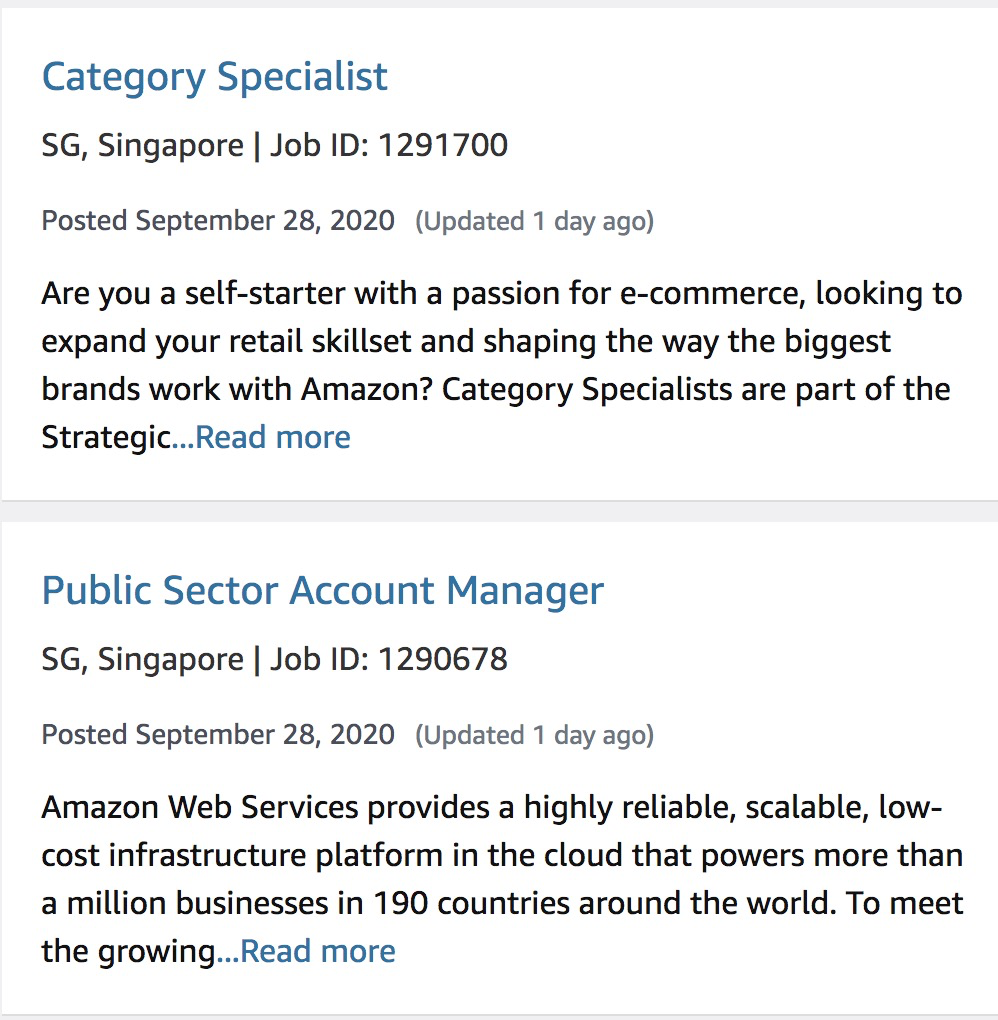 此外,亞馬遜已經(jīng)開始在新加坡招人。