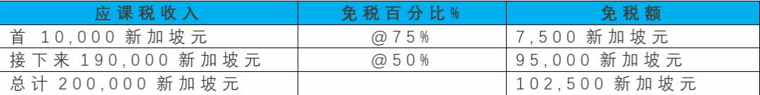 新設(shè)立新加坡(稅)居民企業(yè)的應(yīng)納稅所得額中,前10萬(wàn)新元可免稅75%,10萬(wàn)-20萬(wàn)新元可免稅50%。該方案的其他內(nèi)容保持不變。